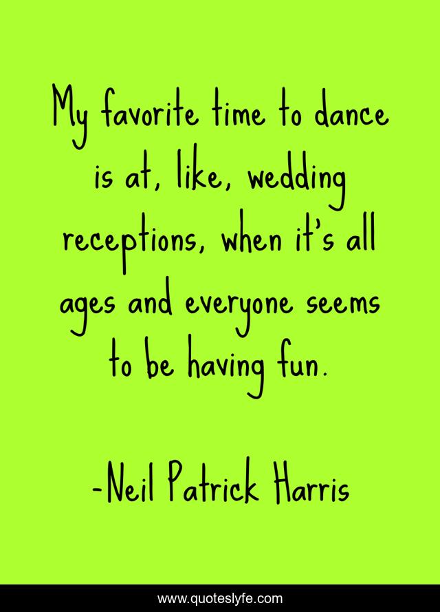 This page presents the quote "My favorite time to dance is at, like, wedding receptions, when it's all ages and everyone seems to be having fun.". Author of this quote is Neil Patrick Harris. This quote is about dance, fun, time,.