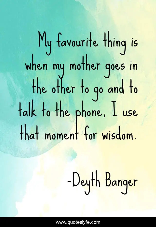 This page presents the quote "My favourite thing is when my mother goes in the other to go and to talk to the phone, I use that moment for wisdom.". Author of this quote is Deyth Banger. This quote is about use, wise, favourite, wisdom, phone, mother,.