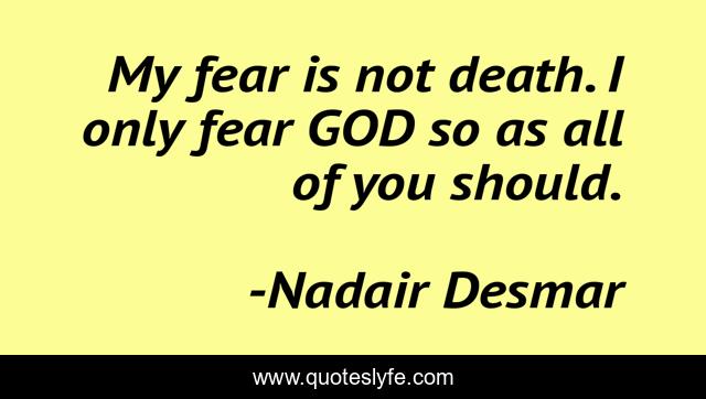 This page presents the quote "My fear is not death. I only fear GOD so as all of you should.". Author of this quote is Nadair Desmar. This quote is about fear, belief,.