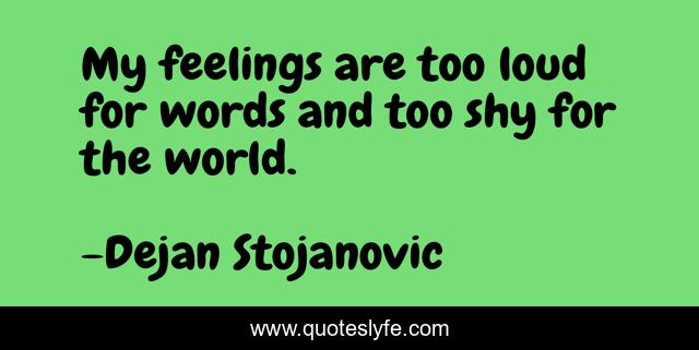 This page presents the quote "My feelings are too loud for words and too shy for the world.". Author of this quote is Dejan Stojanovic. This quote is about literature, dejan-stojanovic, poetry, feelings, shyness, quotes, words, shy, world,.