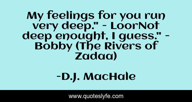 This page presents the quote "My feelings for you run very deep." - LoorNot deep enought, I guess." - Bobby (The Rivers of Zadaa)". Author of this quote is D.J. MacHale. This quote is about humor, disappointment,.