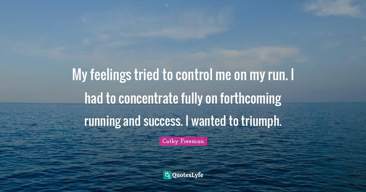 This page presents the quote "My feelings tried to control me on my run. I had to concentrate fully on forthcoming running and success. I wanted to triumph.". Author of this quote is Cathy Freeman. This quote is about success, feelings, triumph, wanted, running, forthcoming,.