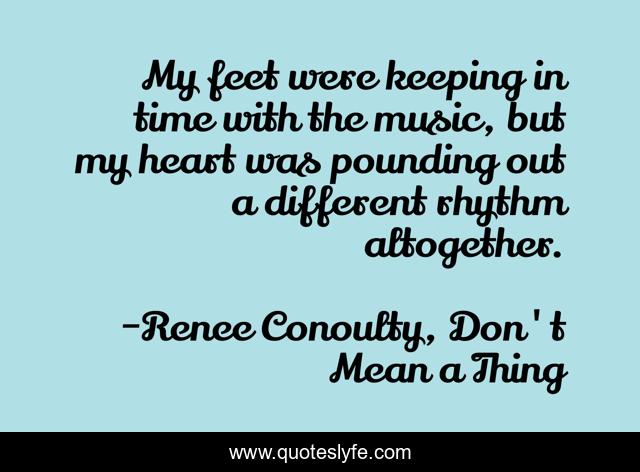 "Renee Conoulty, Don't Mean a Thing Quotes." Quoteslyfe.com, 2025. Tue. 09 Dec. 2025. <https://www.quoteslyfe.com/quote/My-feet-were-keeping-in-time-with-79349>.