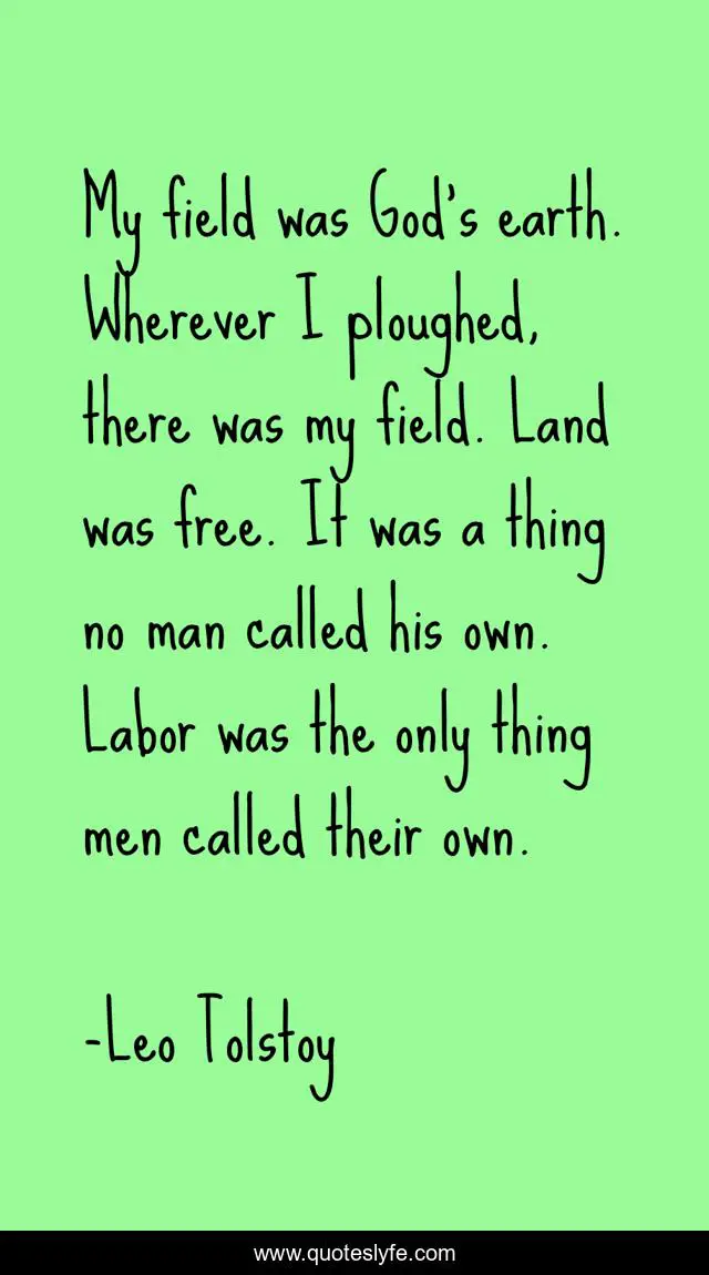 This page presents the quote "My field was God’s earth. Wherever I ploughed, there was my field. Land was free. It was a thing no man called his own. Labor was the only thing men called their own.". Author of this quote is Leo Tolstoy. This quote is about peace-of-mind, wisdom,.