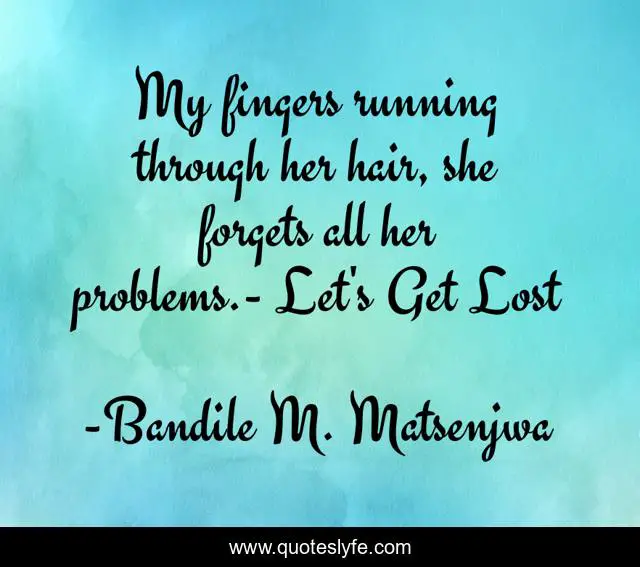 This page presents the quote "My fingers running through her hair, she forgets all her problems.- Let's Get Lost". Author of this quote is Bandile M. Matsenjwa. This quote is about romance, erotica,.