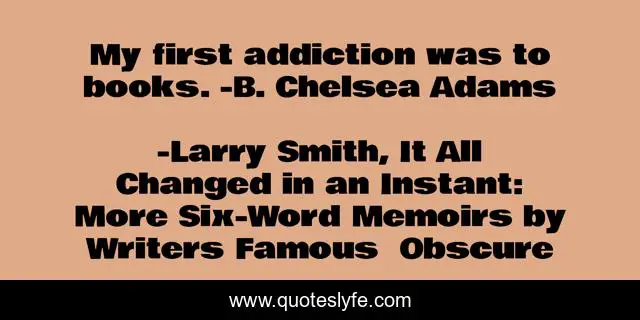 "Larry Smith, It All Changed in an Instant: More Six-Word Memoirs by Writers Famous Obscure Quotes." Quoteslyfe.com, 2025. Fri. 05 Dec. 2025. <https://www.quoteslyfe.com/quote/My-first-addiction-was-to-books-B-178666>.