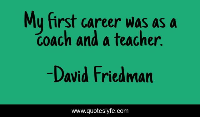 This page presents the quote "My first career was as a coach and a teacher.". Author of this quote is David Friedman. This quote is about career, coach, first,.