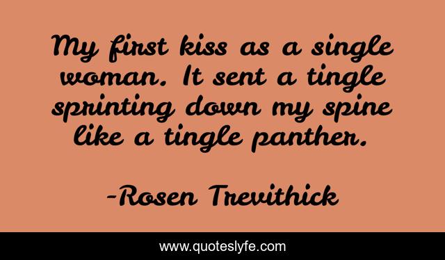 This page presents the quote "My first kiss as a single woman. It sent a tingle sprinting down my spine like a tingle panther.". Author of this quote is Rosen Trevithick. This quote is about tingle-panther, humor, humour, tingle, kissing, panthers,.