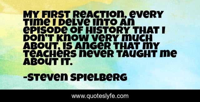 This page presents the quote "My first reaction, every time I delve into an episode of history that I don’t know very much about, is anger that my teachers never taught me about it.". Author of this quote is Steven Spielberg. .