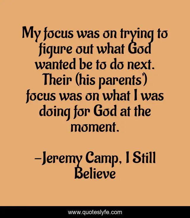 "Jeremy Camp, I Still Believe Quotes." Quoteslyfe.com, 2025. Fri. 05 Dec. 2025. <https://www.quoteslyfe.com/quote/My-focus-was-on-trying-to-figure-206112>.