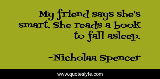 This page presents the quote "My friend says she's smart. She reads a book to fall asleep.". Author of this quote is Nicholaa Spencer. This quote is about humor, nicholaa-spencer, writing, behaviour, attitude, book, books, inspirational, enthusiasm,.