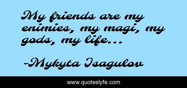 This page presents the quote "My friends are my enimies, my magi, my gods, my life...". Author of this quote is Mykyta Isagulov. .