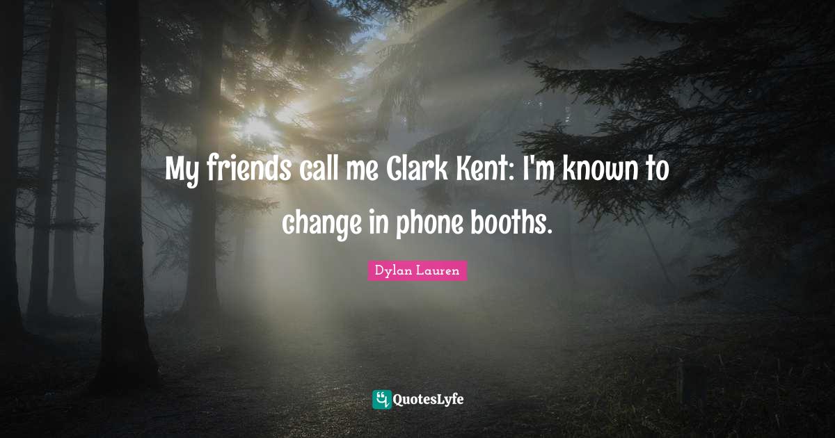 This page presents the quote "My friends call me Clark Kent: I'm known to change in phone booths.". Author of this quote is Dylan Lauren. This quote is about phones, phone booth, kent, call me, my friends, known, change,.