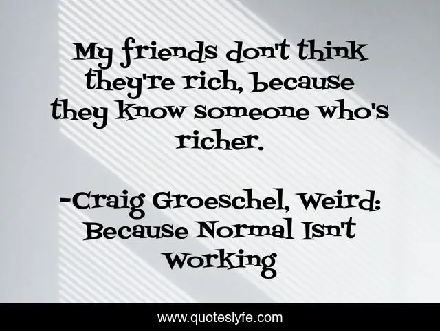 This page presents the quote "My friends don't think they're rich, because they know someone who's richer.". Author of this quote is Craig Groeschel, Weird: Because Normal Isn't Working. This quote is about because, rich, who-s, they-re, friends, richer, someone, they, don-t,.