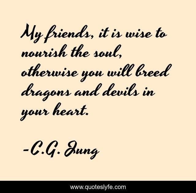 This page presents the quote "My friends, it is wise to nourish the soul, otherwise you will breed dragons and devils in your heart.". Author of this quote is C.G. Jung. This quote is about psychology, soul,.