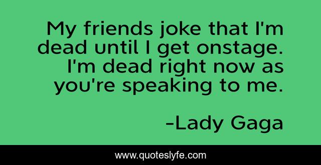 This page presents the quote "My friends joke that I’m dead until I get onstage. I’m dead right now as you’re speaking to me.". Author of this quote is Lady Gaga. This quote is about lady-gaga, music, concerts, stage,.
