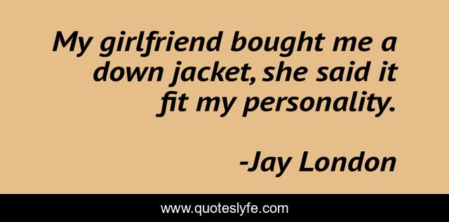 This page presents the quote "My girlfriend bought me a down jacket, she said it fit my personality.". Author of this quote is Jay London. This quote is about me, she, personality,.