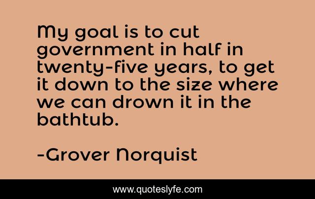This page presents the quote "My goal is to cut government in half in twenty-five years, to get it down to the size where we can drown it in the bathtub.". Author of this quote is Grover Norquist. This quote is about down, goal, years,.