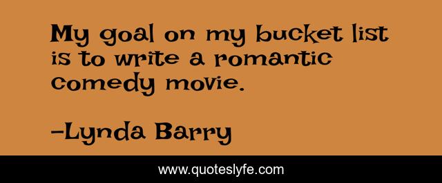 This page presents the quote "My goal on my bucket list is to write a romantic comedy movie.". Author of this quote is Lynda Barry. This quote is about comedy, bucket, goal,.