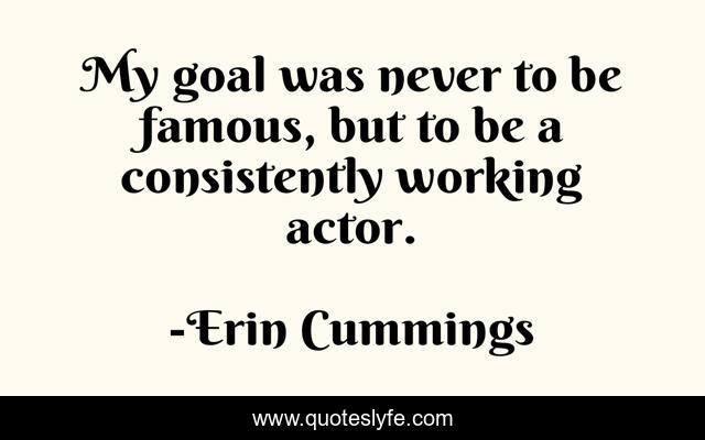 This page presents the quote "My goal was never to be famous, but to be a consistently working actor.". Author of this quote is Erin Cummings. This quote is about goal, working, actor,.