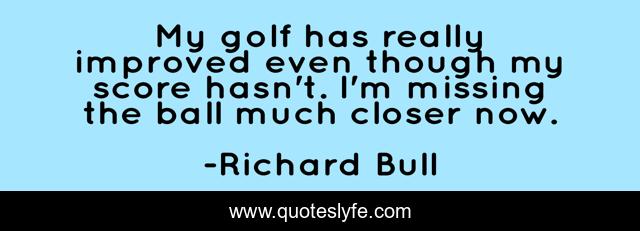 This page presents the quote "My golf has really improved even though my score hasn't. I'm missing the ball much closer now.". Author of this quote is Richard Bull. .