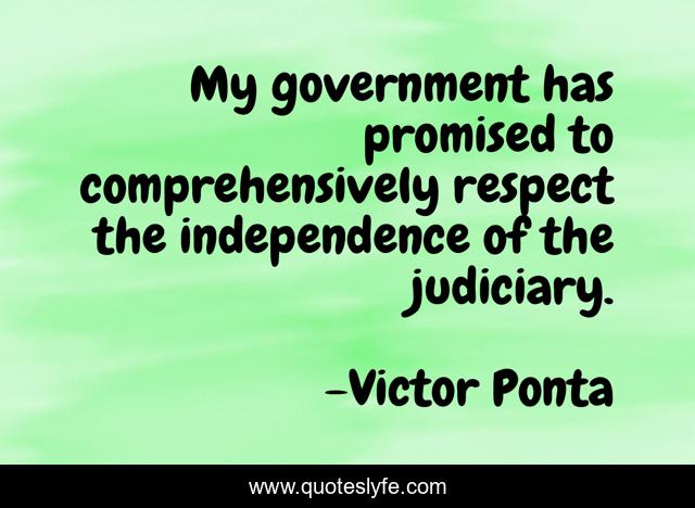 This page presents the quote "My government has promised to comprehensively respect the independence of the judiciary.". Author of this quote is Victor Ponta. This quote is about respect, government,.