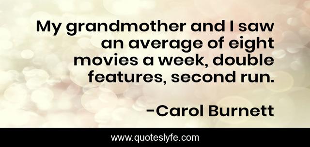 This page presents the quote "My grandmother and I saw an average of eight movies a week, double features, second run.". Author of this quote is Carol Burnett. This quote is about week, grandmother, run,.