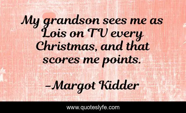 This page presents the quote "My grandson sees me as Lois on TV every Christmas, and that scores me points.". Author of this quote is Margot Kidder. This quote is about me, grandson,.