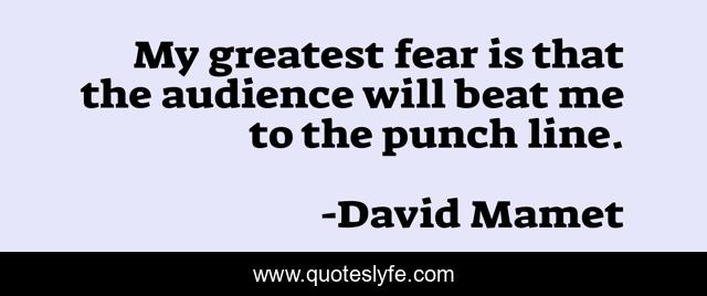 This page presents the quote "My greatest fear is that the audience will beat me to the punch line.". Author of this quote is David Mamet. This quote is about me, audience, greatest,.