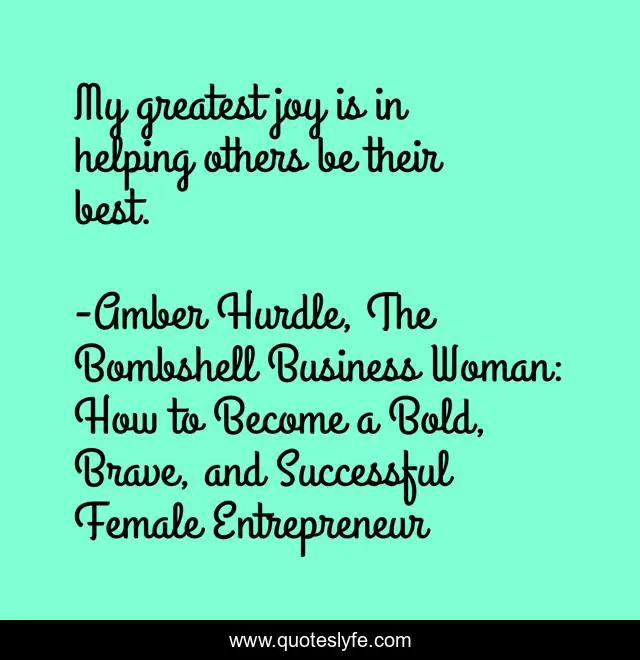 "Amber Hurdle, The Bombshell Business Woman: How to Become a Bold, Brave, and Successful Female Entrepreneur Quotes." Quoteslyfe.com, 2025. Fri. 05 Dec. 2025. <https://www.quoteslyfe.com/quote/My-greatest-joy-is-in-helping-others-229146>.