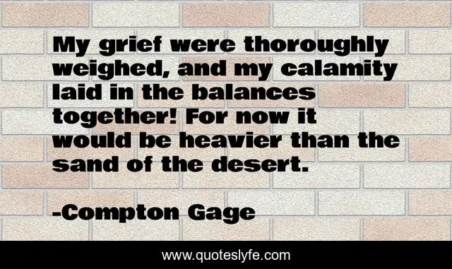 "Compton Gage Quotes." Quoteslyfe.com, 2025. Fri. 05 Dec. 2025. <https://www.quoteslyfe.com/quote/My-grief-were-thoroughly-weighed-and-my-20485>.