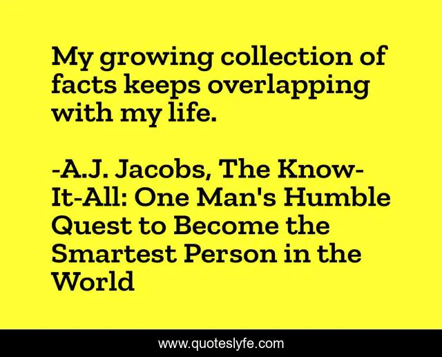 "A.J. Jacobs, The Know-It-All: One Man's Humble Quest to Become the Smartest Person in the World Quotes." Quoteslyfe.com, 2025. Fri. 05 Dec. 2025. <https://www.quoteslyfe.com/quote/My-growing-collection-of-facts-keeps-overlapping-218218>.
