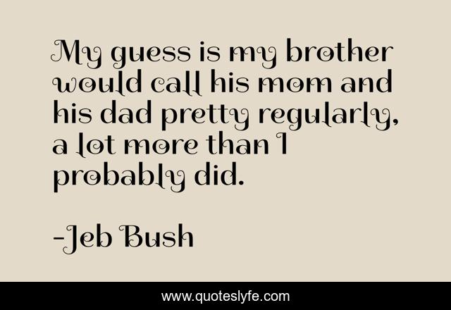 This page presents the quote "My guess is my brother would call his mom and his dad pretty regularly, a lot more than I probably did.". Author of this quote is Jeb Bush. This quote is about guess, brother, pretty,.