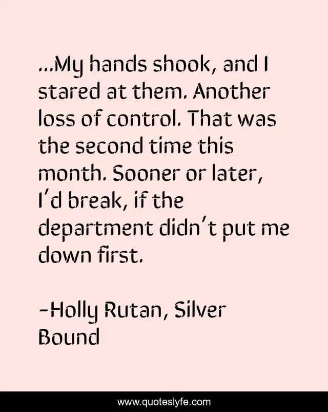 "Holly Rutan, Silver Bound Quotes." Quoteslyfe.com, 2025. Sat. 06 Dec. 2025. <https://www.quoteslyfe.com/quote/My-hands-shook-and-I-stared-at-156385>.