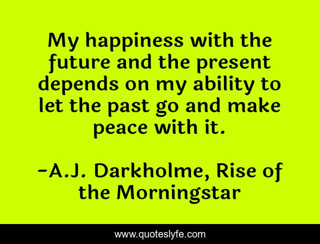 This page presents the quote "My happiness with the future and the present depends on my ability to let the past go and make peace with it.". Author of this quote is A.J. Darkholme, Rise of the Morningstar. This quote is about ability, peace, focus, past, future, perspective, happiness, present, self-improvement,.