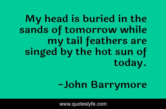 This page presents the quote "My head is buried in the sands of tomorrow while my tail feathers are singed by the hot sun of today.". Author of this quote is John Barrymore. .