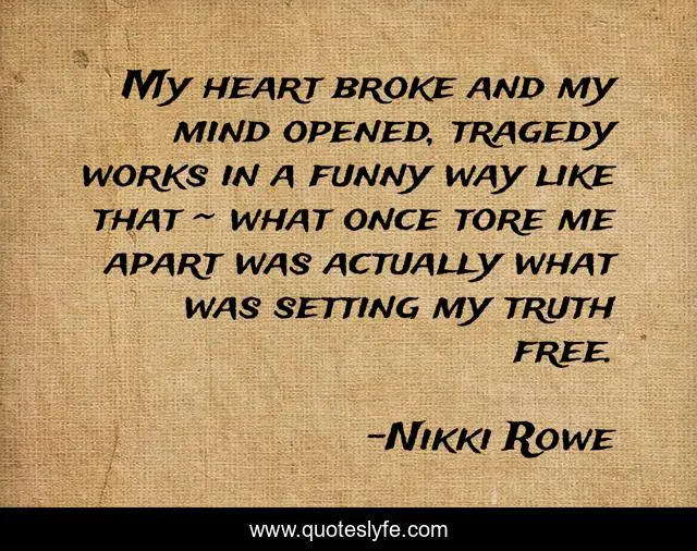 "Nikki Rowe Quotes." Quoteslyfe.com, 2025. Fri. 05 Dec. 2025. <https://www.quoteslyfe.com/quote/My-heart-broke-and-my-mind-opened-55116>.