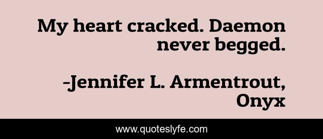 "Jennifer L. Armentrout, Onyx Quotes." Quoteslyfe.com, 2025. Mon. 08 Dec. 2025. <https://www.quoteslyfe.com/quote/My-heart-cracked-Daemon-never-begged-17832>.