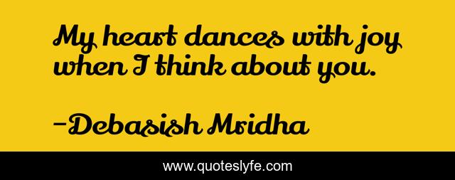 This page presents the quote "My heart dances with joy when I think about you.". Author of this quote is Debasish Mridha. This quote is about philosophy, my-heart-dances-with-joy, joy, thinking-of-you, debasish-mridha, quotes, inspirational, enthusiasm, debasish-mridha-m-d,.