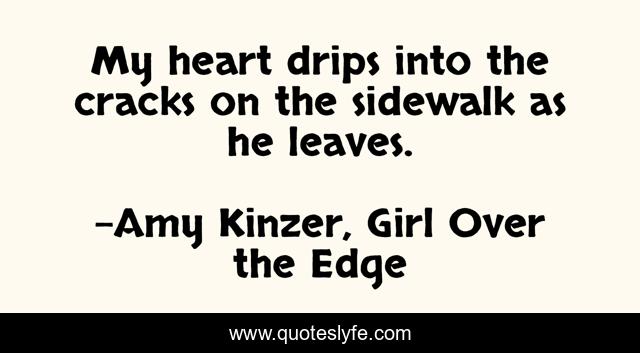 This page presents the quote "My heart drips into the cracks on the sidewalk as he leaves.". Author of this quote is Amy Kinzer, Girl Over the Edge. This quote is about heart, drips,.