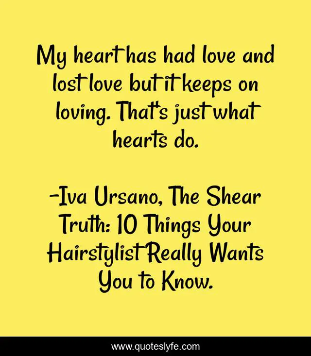 "Iva Ursano, The Shear Truth: 10 Things Your Hairstylist Really Wants You to Know. Quotes." Quoteslyfe.com, 2025. Sat. 06 Dec. 2025. <https://www.quoteslyfe.com/quote/My-heart-has-had-love-and-lost-49700>.