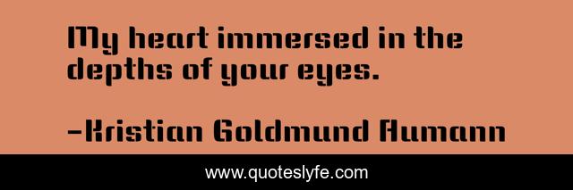 This page presents the quote "My heart immersed in the depths of your eyes.". Author of this quote is Kristian Goldmund Aumann. This quote is about love, affection,.