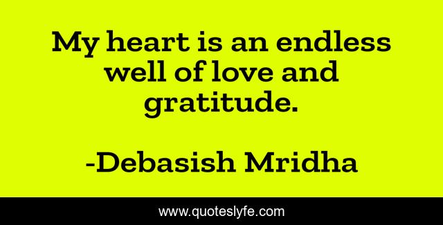 This page presents the quote "My heart is an endless well of love and gratitude.". Author of this quote is Debasish Mridha. This quote is about life, love, knowledge, inspirational, intelligence, philosophy, wisdom, quotes, affection,.