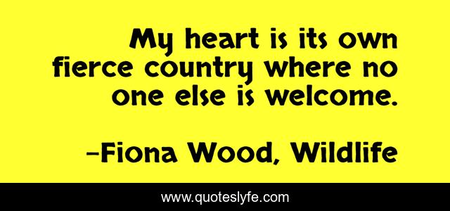 This page presents the quote "My heart is its own fierce country where no one else is welcome.". Author of this quote is Fiona Wood, Wildlife. This quote is about fierce, heart, strength,.