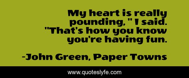 This page presents the quote "My heart is really pounding, " I said. "That's how you know you're having fun.". Author of this quote is John Green, Paper Towns. .