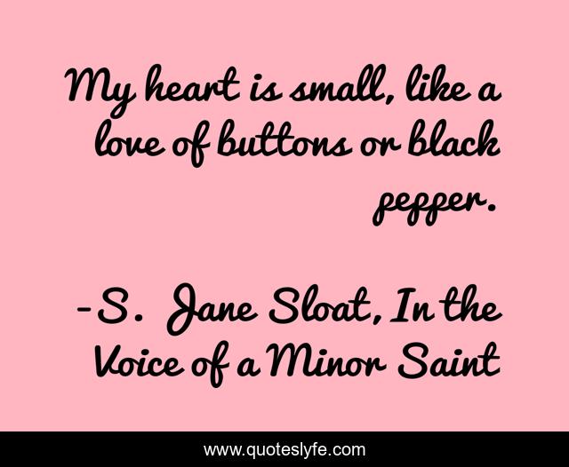 This page presents the quote "My heart is small, like a love of buttons or black pepper.". Author of this quote is S. Jane Sloat, In the Voice of a Minor Saint. This quote is about heart, pepper, love, poetry, buttons, sympathy, affection,.