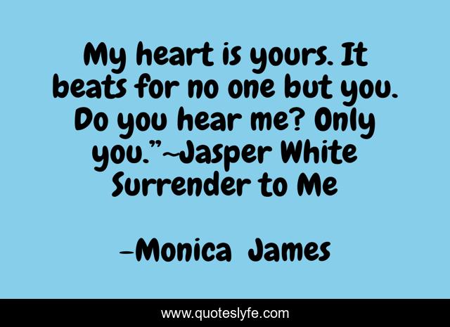 This page presents the quote "My heart is yours. It beats for no one but you. Do you hear me? Only you.”~Jasper White Surrender to Me". Author of this quote is Monica James. This quote is about new-adult, romance-love,.