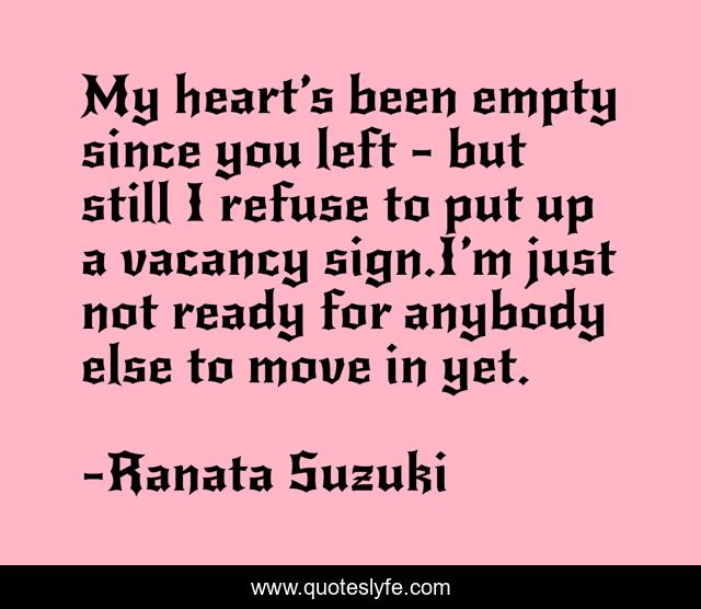 "Ranata Suzuki Quotes." Quoteslyfe.com, 2025. Sun. 07 Dec. 2025. <https://www.quoteslyfe.com/quote/My-heart-s-been-empty-since-you-22417>.