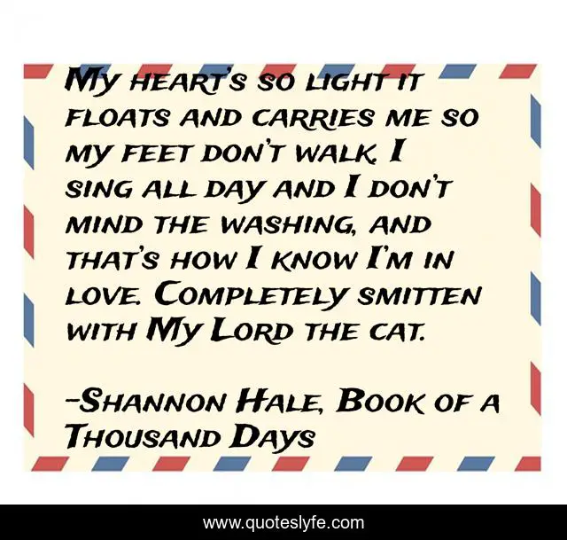 "Shannon Hale, Book of a Thousand Days Quotes." Quoteslyfe.com, 2025. Mon. 08 Dec. 2025. <https://www.quoteslyfe.com/quote/My-heart-s-so-light-it-floats-41645>.