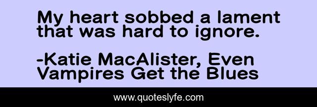 This page presents the quote "My heart sobbed a lament that was hard to ignore.". Author of this quote is Katie MacAlister, Even Vampires Get the Blues. .